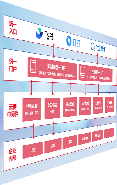 对协作平台提供支持服务,,,支持企业应用与协作平台对接,,包含组织同步、、消息集成、、待办集成等。。。。支持目前主流的协作平台:钉钉、、、、企微和飞书。。。